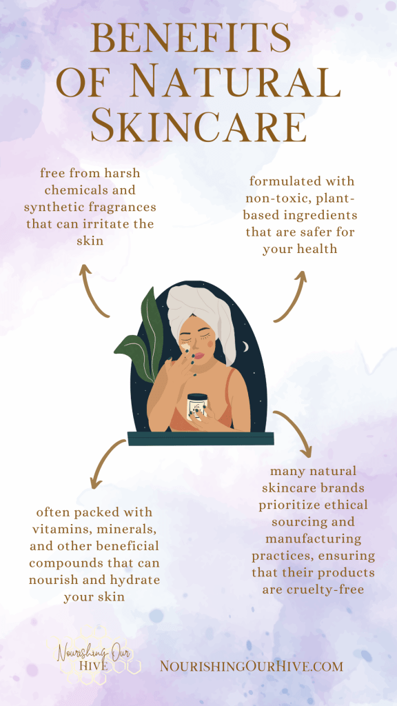 - Gentle on the Skin: Natural skincare products are free from harsh chemicals and synthetic fragrances that can irritate the skin. They are often formulated with gentle, plant-based ingredients that work in harmony with your skin’s natural chemistry.